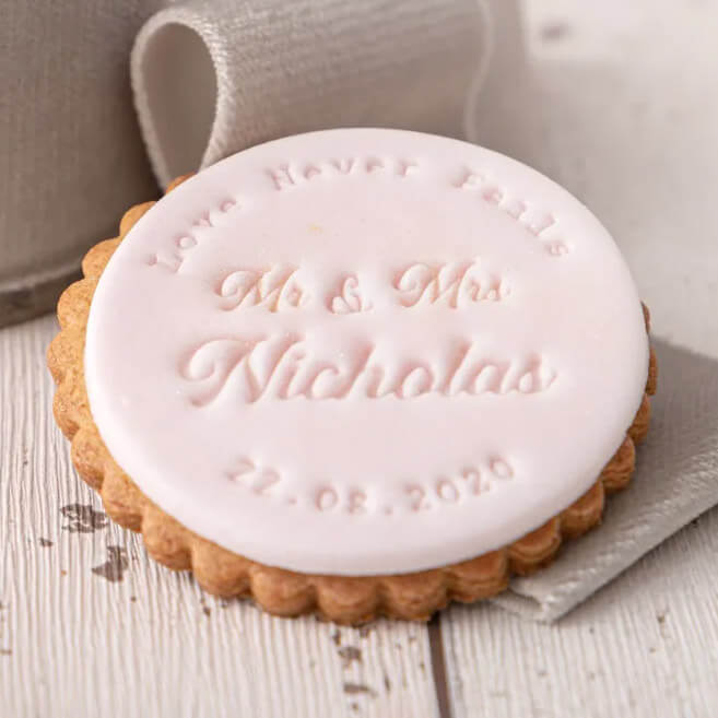 Our handmade vanilla biscuits offer a special, creative and thoughtful gift for your wedding guests that will be remembered long after the last crumbs are eaten.Β