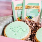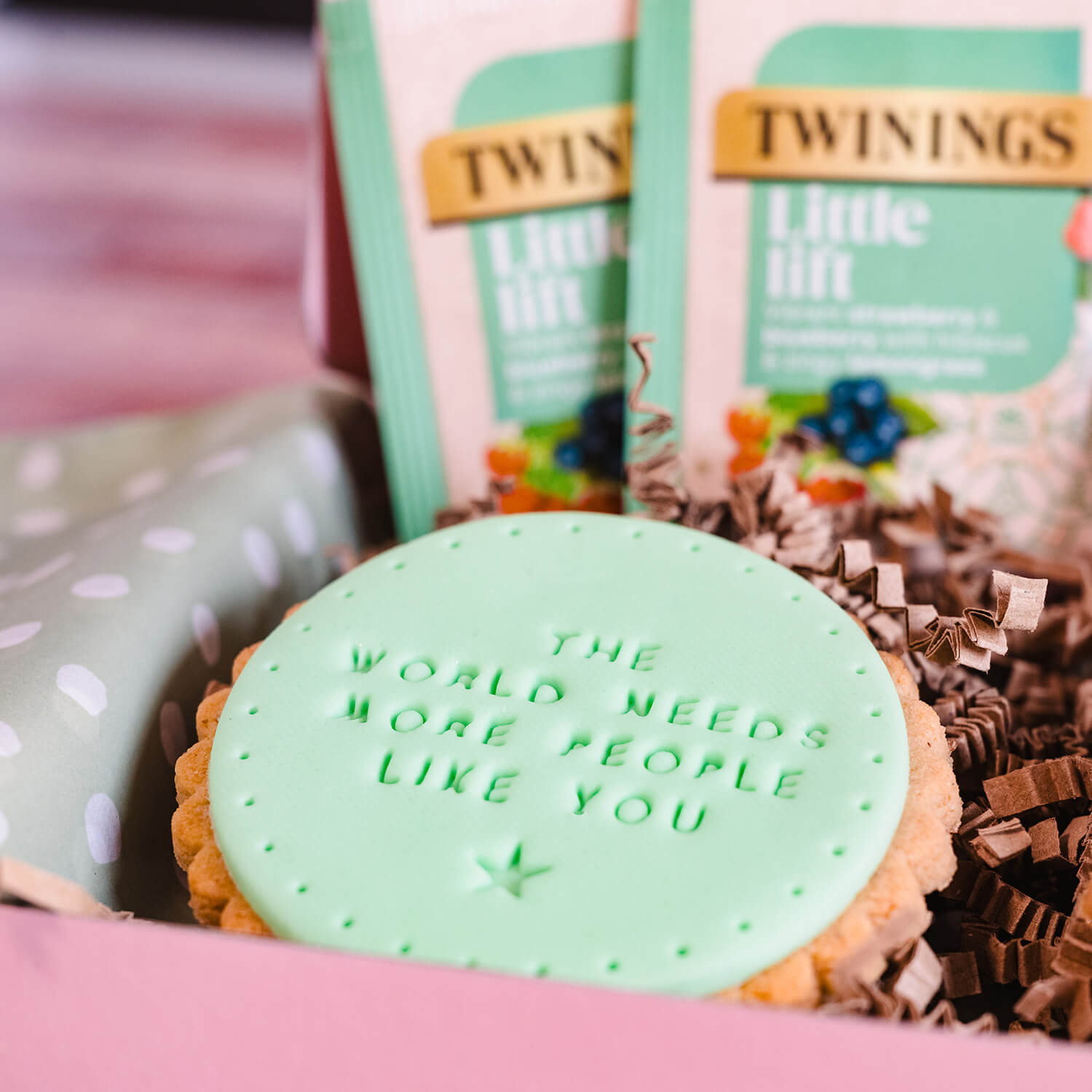 From our bakery in Rutland we make delicious vanilla biscuits and hand stamp each with a special message before gift wrapping them and sending them through the post to brighten someones day.