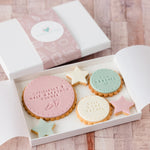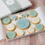 All our biscuits are baked and stamped to order and as the icing is coloured by hand, the colours may vary.
