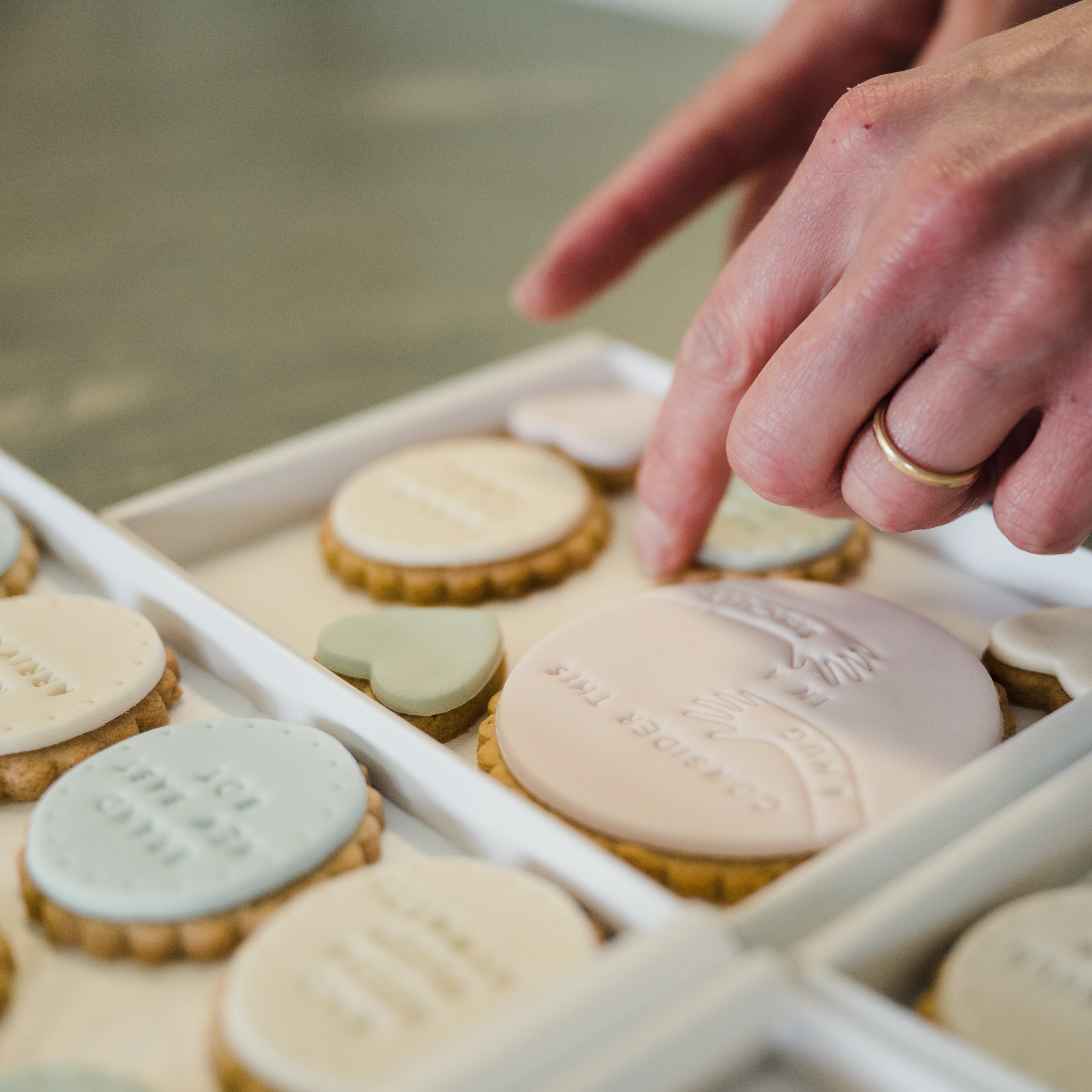 From our bakery in Rutland we make delicious vanilla biscuits and hand stamp each with a special message before gift wrapping them and sending them through the post to brighten someones day.