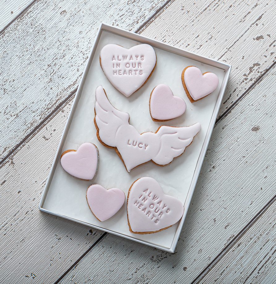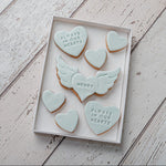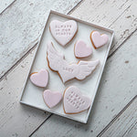 We can add a name to the angel biscuit, just add the detail in the personalisation box. We can also include a personal, handwritten message please add the details in the box.