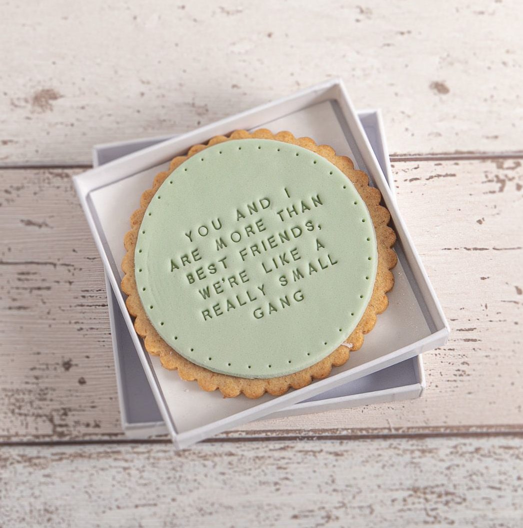 Sometimes we just want to tell a good friend how brilliant we think they are, and what better way than with a lovely vanilla biscuit, handstamped with a special message.