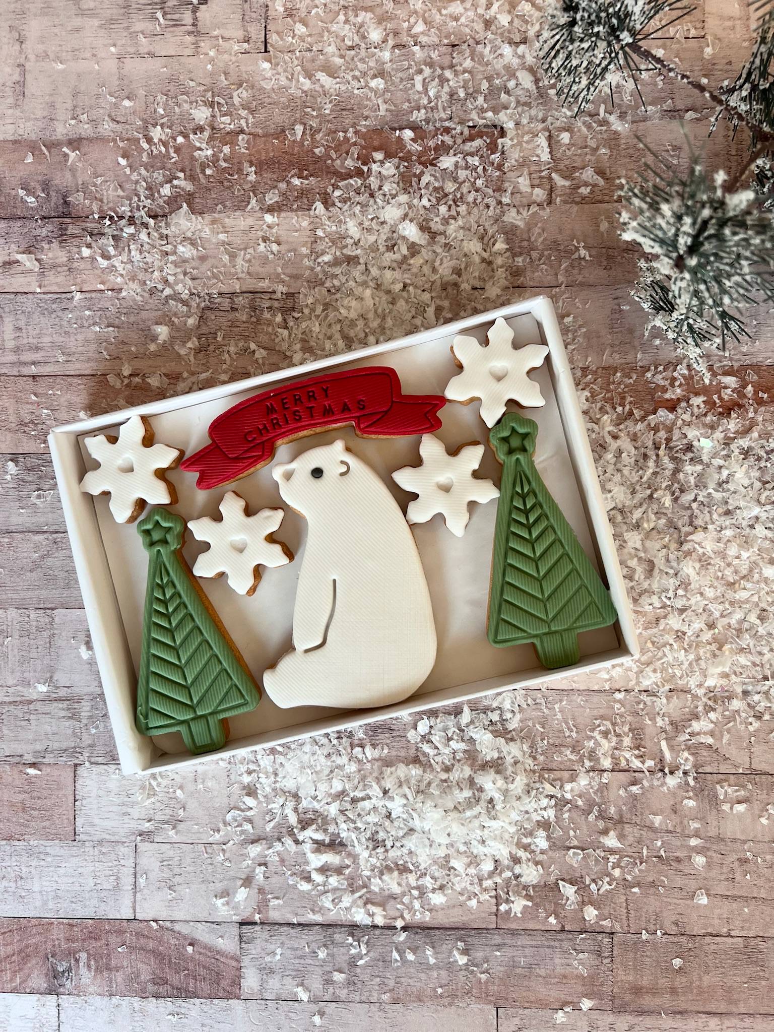 Baked and hand iced with love and care, this Christmas Bear biscuit set is a sweet way to wish someone a very Merry Christmas.